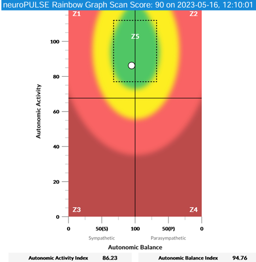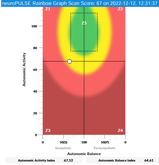 The next scan also assesses the function of the autonomic nervous system by means of Heart Rate Variability (AKA HRV). This test is certainly gaining popularity and many new smart watches have this measurement available – which is an awesome tool! Our test gets more into the specifics and details of how this is all functioning.