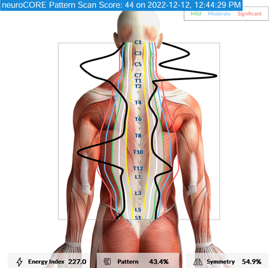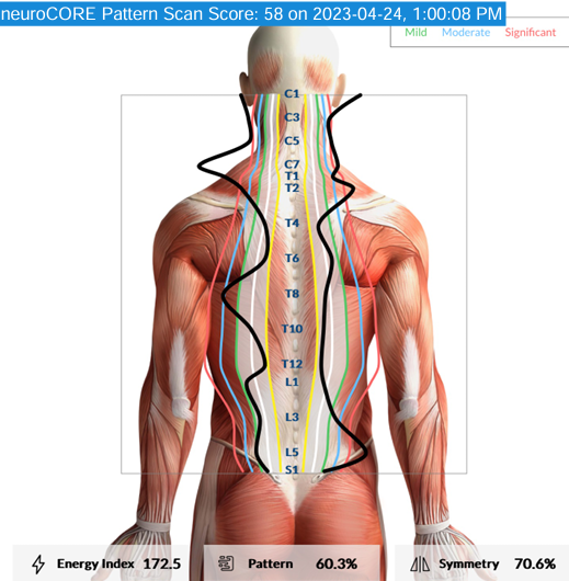 Symmetry Score – this score measures the balance between the right and left sides of the neurospinal system, which is crucial to be then sure that there is balance in overall brain function and coordination